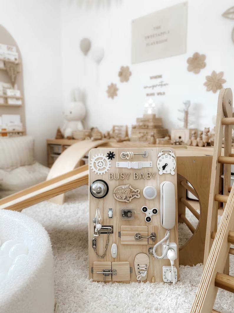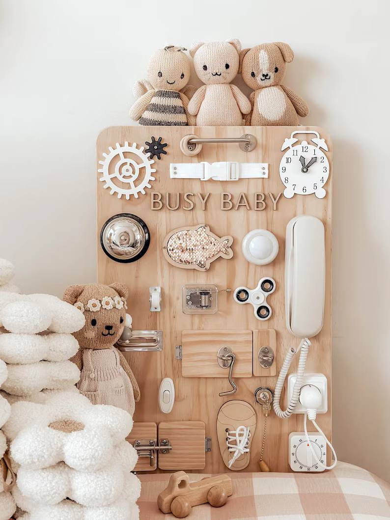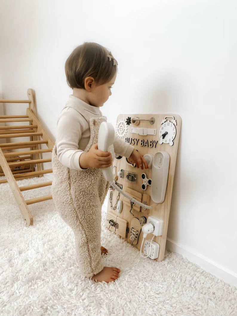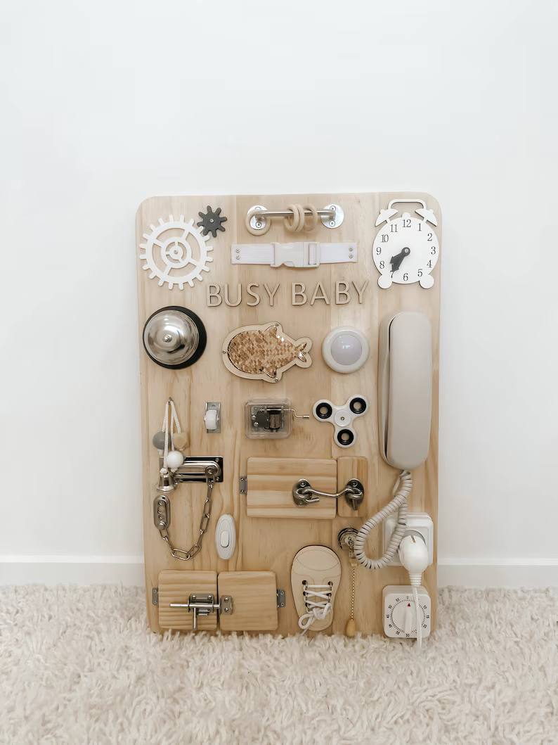 پنل آموزشی مونته سوری که با نام بورد شلوغ (Busy Board) نیز شناخته میشود، یک اسباببازی آموزشی مبتنی بر فلسفه مونتهسوری است که برای تقویت مهارتهای حرکتی ظریف، حل مسئله و تمرکز در کودکان نوپا و پیشدبستانی طراحی شده است. این پنل چوبی شامل مجموعهای از اشیاء و ابزارهای روزمره مانند قفلها، کلیدها، بند کفش، زنگوله، دکمهها و سوئیچهاست که کودکان میتوانند با آنها بازی کنند، بچرخانند، باز و بسته کنند و بکشند. این فعالیتهای واقعی و عملی، کنجکاوی طبیعی کودک را برآورده ساخته و مهارتهای مورد نیاز زندگی را به طور مستقل و ایمن آموزش میدهد. پنل آموزشی مونته سوری ابزاری عالی برای افزایش استقلال و هماهنگی چشم و دست کودک است.