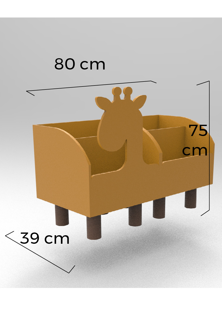 وجود کاراکتر زرافه با گردن بلند، چشمهای شاد و لکههای قهوهای، کتابخانه چوبی کودک طرح زرافه را از یک قفسه ساده به یک اسباببازی دکوراتیو تبدیل میکند. این عنصر فانتزی، کودکان را به سمت کتابخانه جذب کرده و فرآیند کتابخوانی و نظمدهی را به یک بازی دلپذیر تبدیل میسازد.