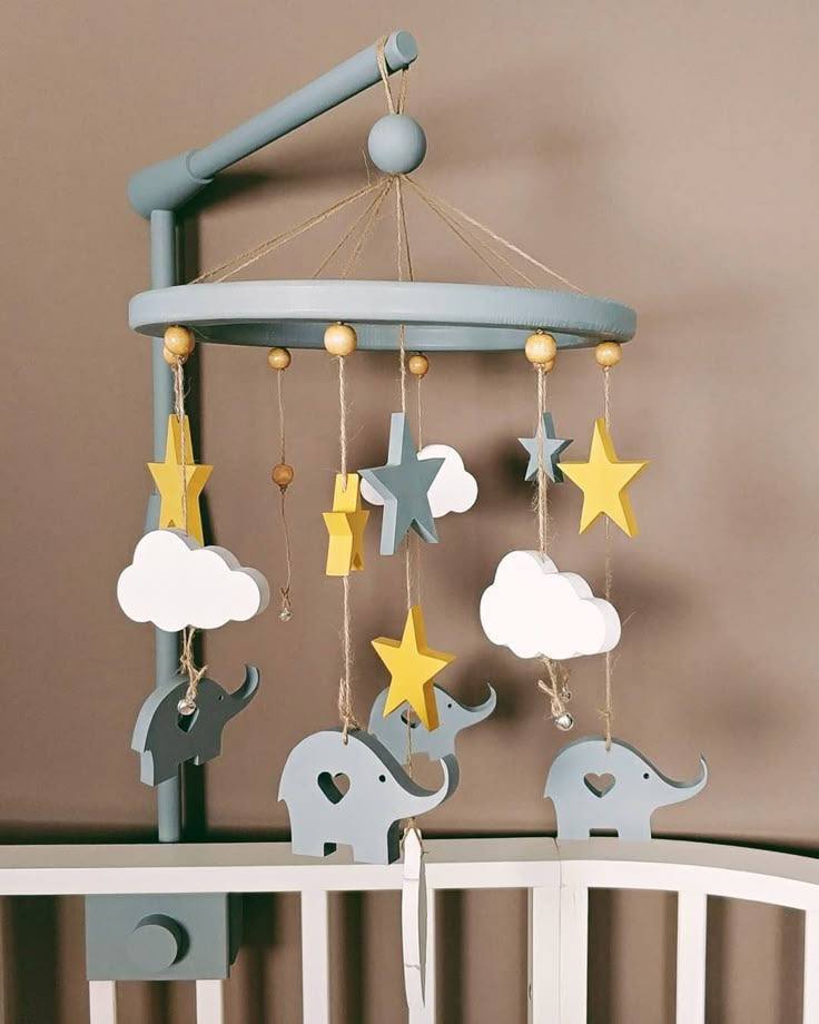 آویز تخت نوزاد چوبی مدل فیل و ستاره | آرامش و زیبایی برای خواب کودک