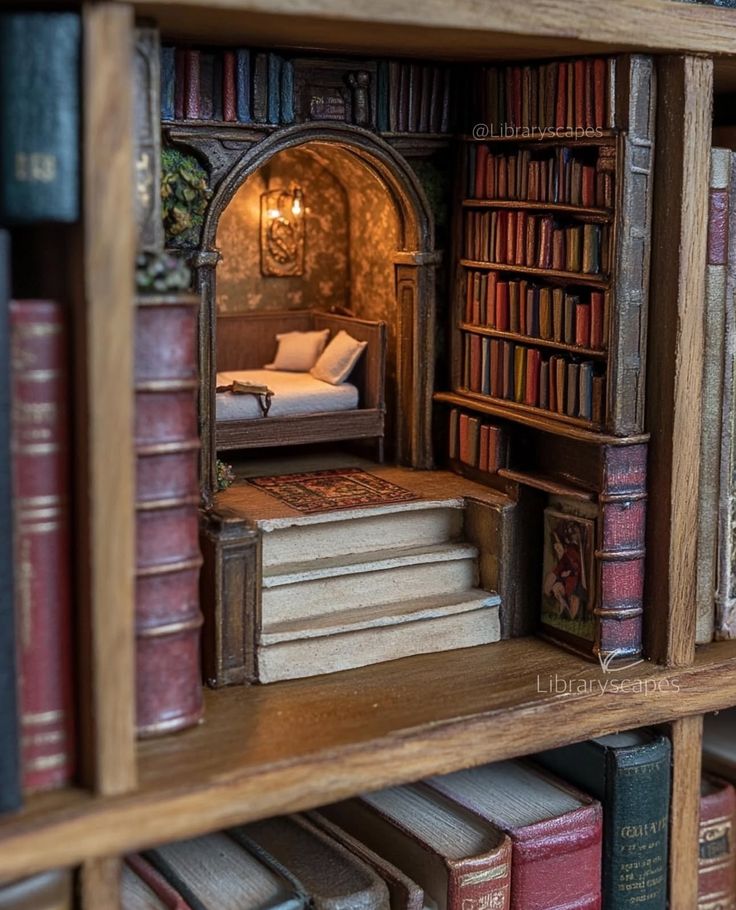 بوک نوک دست‌ساز مینیاتوری | طرح اتاق مخفی کتابخانه با جزئیات سه‌بعدی