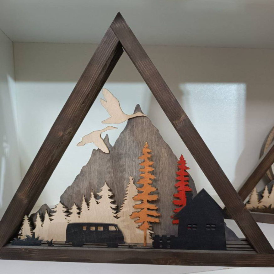 تابلو چوبی دیواری طرح کوه و طبیعت یکی از خاصترین آثار دکوراتیو در سبک روستیک است. طراحی این تابلو با ترکیب المانهای طبیعی مثل کوه، درخت، کلبه و جنگل حس آرامش، سادگی و گرمای طبیعت را به فضای خانه یا محل کار شما منتقل میکند.