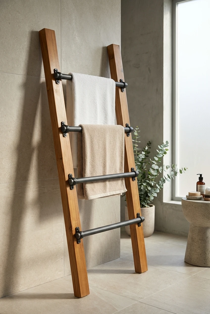 جا حوله ای طرح نردبان با نرده های فلزی - دکوراسیون مدرن کد 005