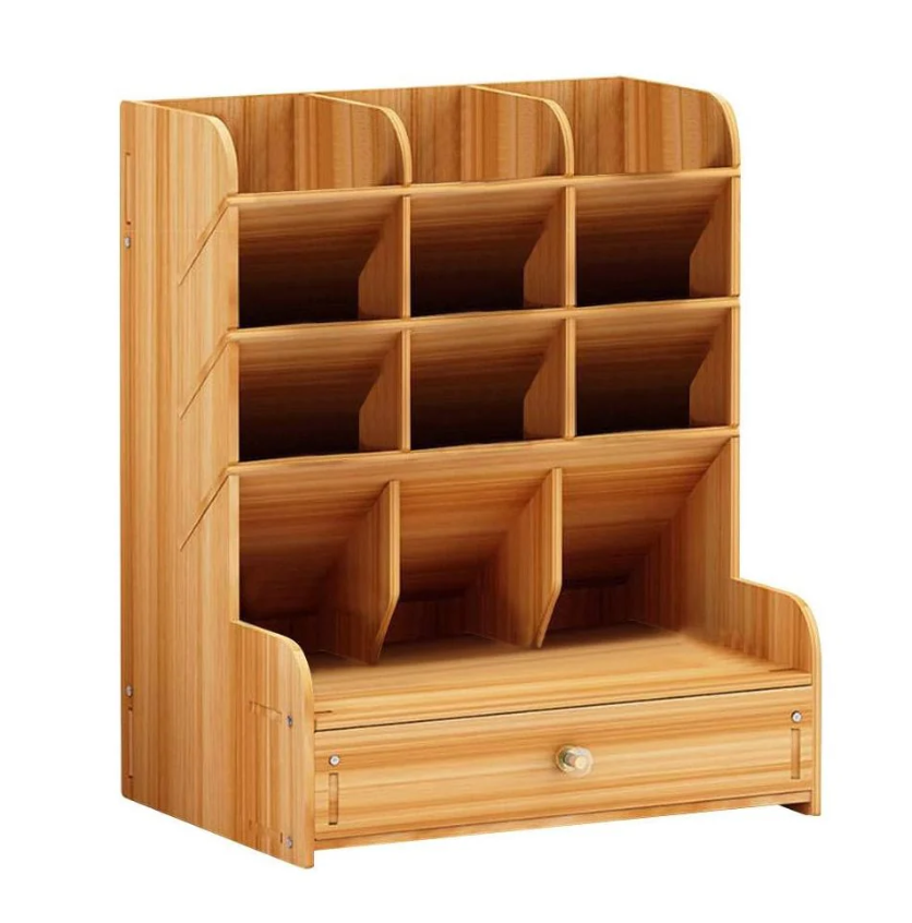 نظم‌دهنده رومیزی چوبی با کشو ترکیبی از زیبایی، کارایی و دوام است.