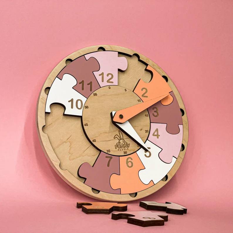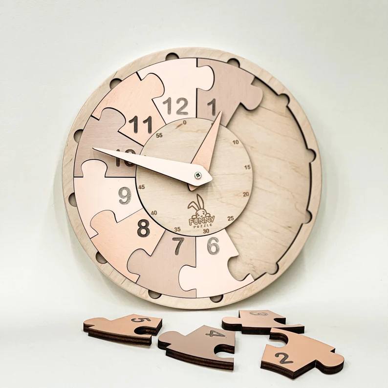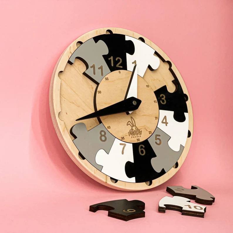 ساعت دیواری پازلی چوبی مدل Funny Puzzle | سرگرمکننده و آموزشی کودکان