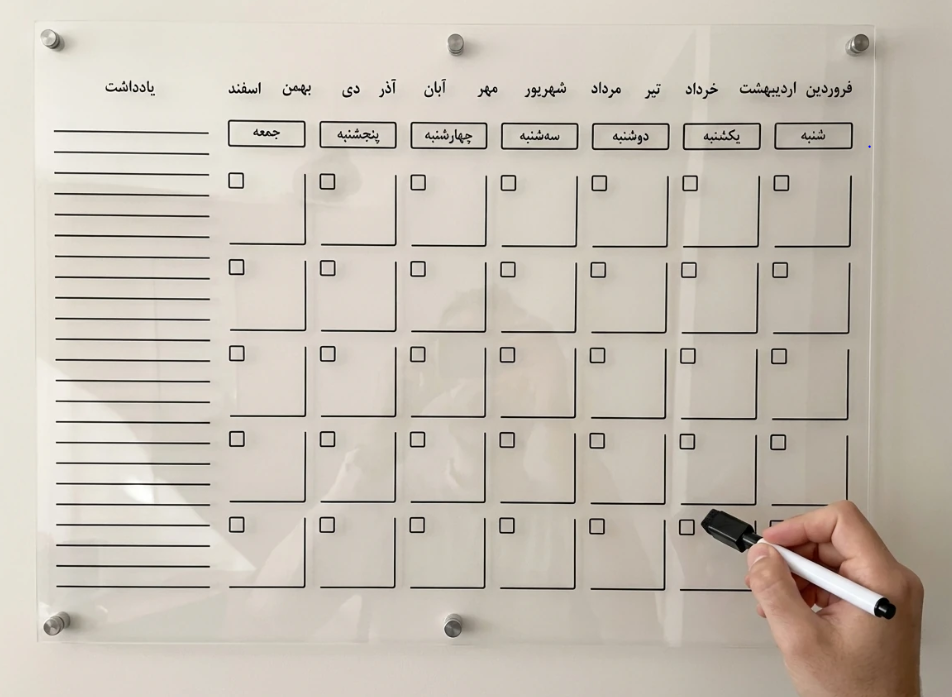 پلنر دیواری ماهانه فارسی (Persian Monthly Acrylic Planner)
