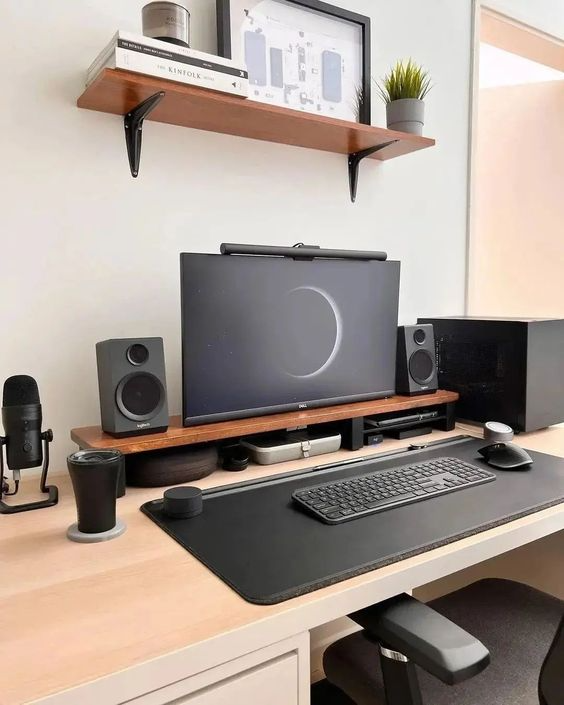- زیر مانیتوری ارگونومیک چوبی: جهت اصلاح زاویه دید و ایجاد فضای ذخیرهسازی روی میز.