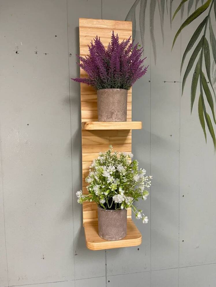 گلدان دیواری چوبی مدل ضربدری | دکور طبیعی با سه استند گلدان