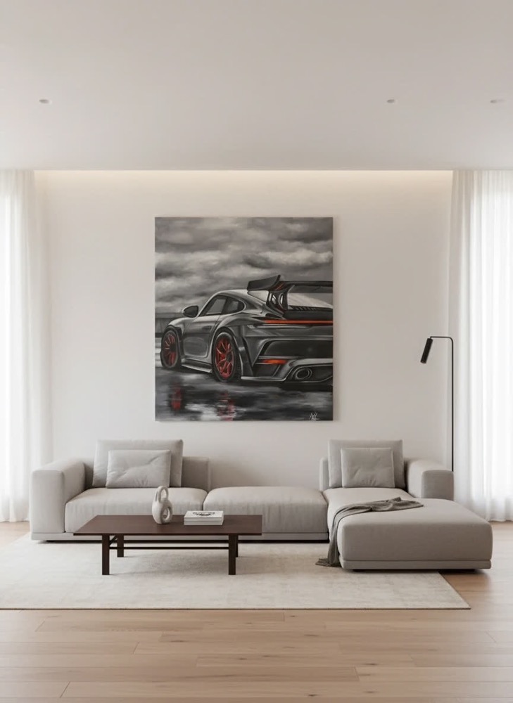 تابلو نقاشی خودرو اسپرت پورشه | سبک مدرن و دکور لوکس دیواری