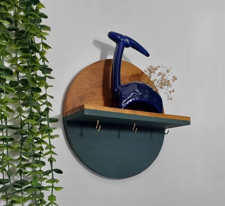 ساعت دیواری چوبی مدرن | با شلف گل، ترکیبی زیبا برای دکوراسیون